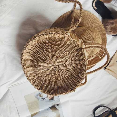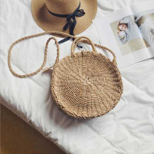 Round Rattan Straw Bohemia Style Beach Circle Beach Bags